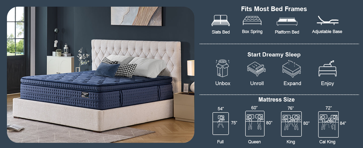 Cooling Euro Top Plushness – Gel-infused memory foam for pressure relief & cooler sleep.
