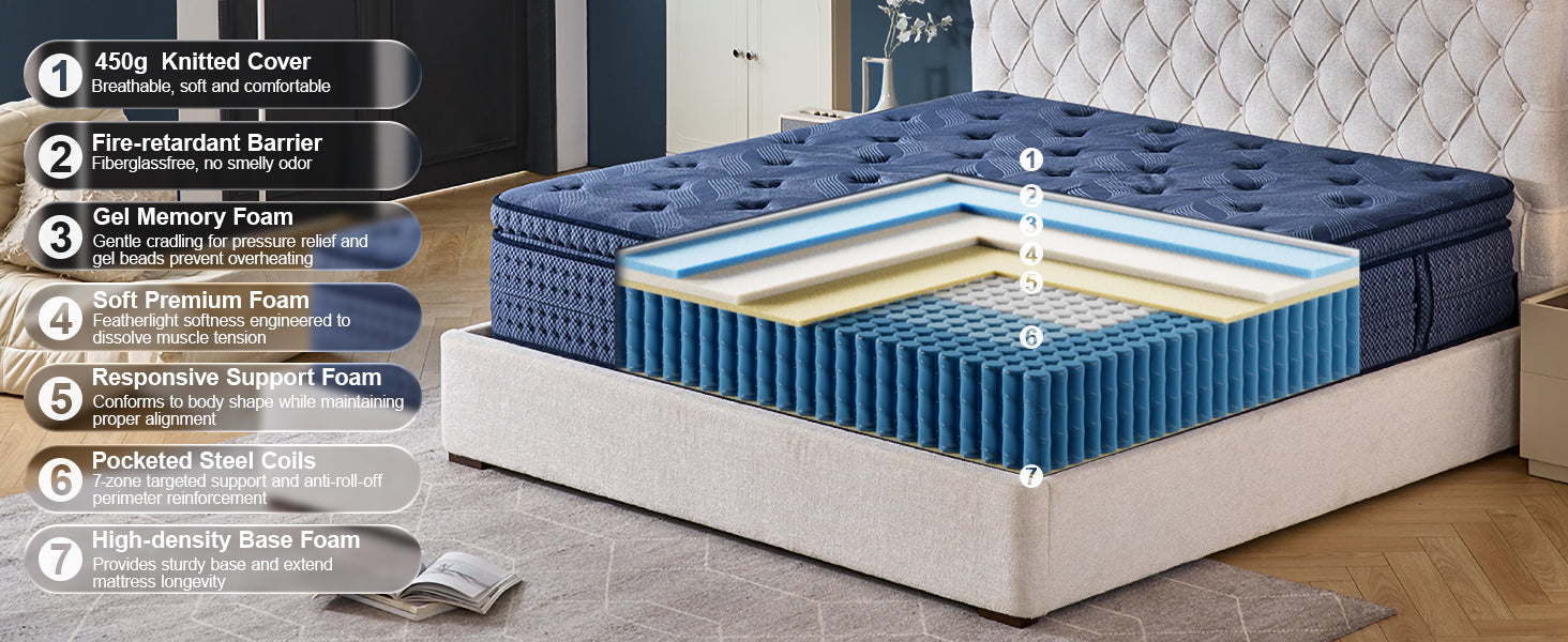 Advanced Airflow Design – Breathable cover + open-cell foam + coil spaces prevent heat buildup.